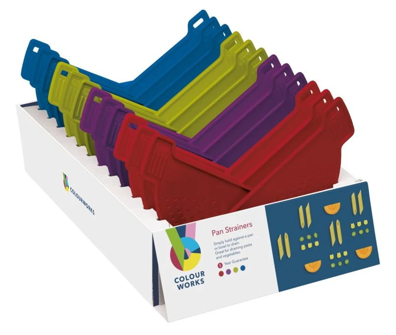 Just hold the Colourworks pan strainer against the pan or bowl to drain.