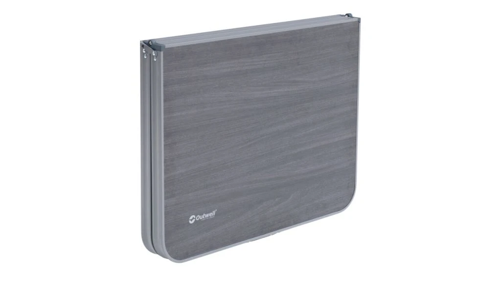 The Outwell Coledale L Table features telescopic oversized aluminium legs for easy, secure height adjustment and flat feet for load-bearing support.