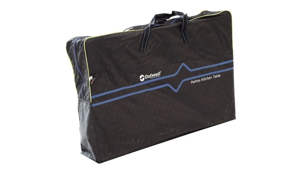 In a stylish black/grey fabric with a solid bamboo table top, this Outwell Padres Kitchen Table features three handy hooks on one side and a storage pocket on the other.