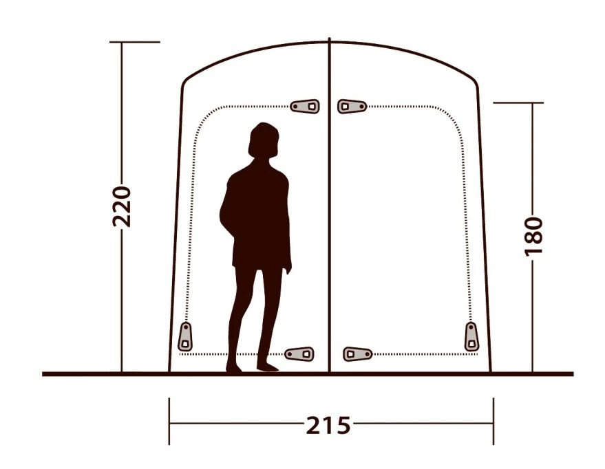 Other features include Quick & Quiet connecting doors, protected ventilation panels, towel rail, pockets and groundsheet with drain mesh.