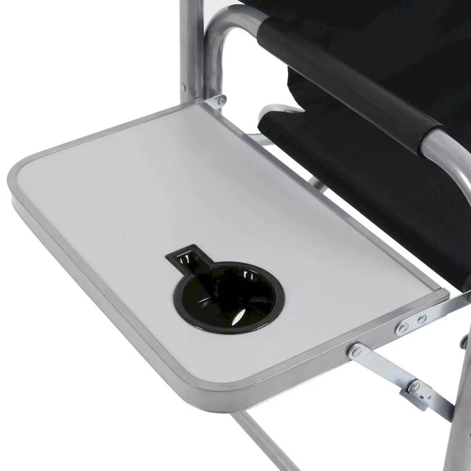 Regatta heavy-duty, steel-frame garden/camping chair with a fold-out side table. Folds down flat and packs away.