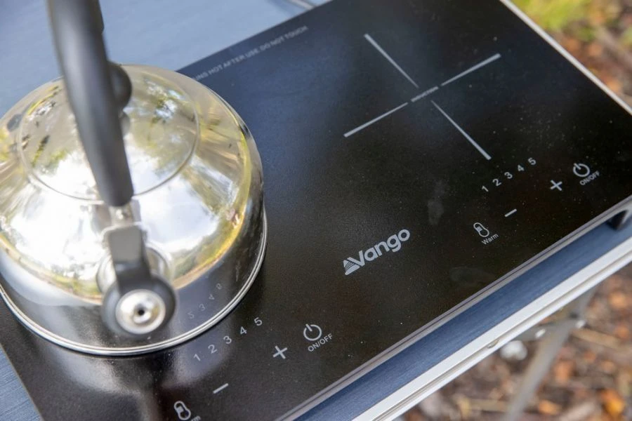 The Vango Sizzle Double induction hob has been designed for outdoor use, with its 800W power per hob specifically designed for campsite use.